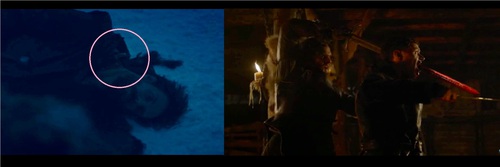 Hasta ahí nos conduce la última secuencia (de nuevo larga) de este episodio, que hemos cerrado en el mismo lugar que el anterior, rodeados de nieve y muerte. Si en el 4x04 (Guardajuramentos) la Muerte caminaba y secuestraba bebés, en este capítulo es una muerte mucho más mundana, de cuellos rotos y espadas que atraviesan gargantas...