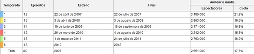 Lógicamente los datos de los audimetros es la guía más fiable que tienen las cadenas, pero lógicamente es imposible contabilizar exactamente cuantas personas ven la serie, y más hoy en día con las descargas de internet. No obstante, estos datos hablan por sí solos, y espero que en la sexta temporada haya un capítulo que este dentro de las 10 emisiones más vistas.