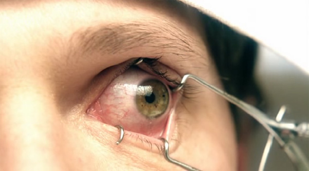 Una máquina de escribir con letra courier imprimiendo en unos sobres los nombres de Michael Lewis, Gina Delaney y Francis Seger. Un ambiente envuelto en el blanco más absoluto. Una persona con el ojo abierto mediante un mecanismo que le impide cerrarlo para recibir una inyección de una enfermera que con toda tranquilidad, como si hubiese realizado esa acción numerosas veces, se coloca los guantes y llena la jeringuilla con un líquido de color azul que se dispone a inyectar en el sujeto en la silla mientras no para de repetir "esto es el principio", "este es tu principio" ...