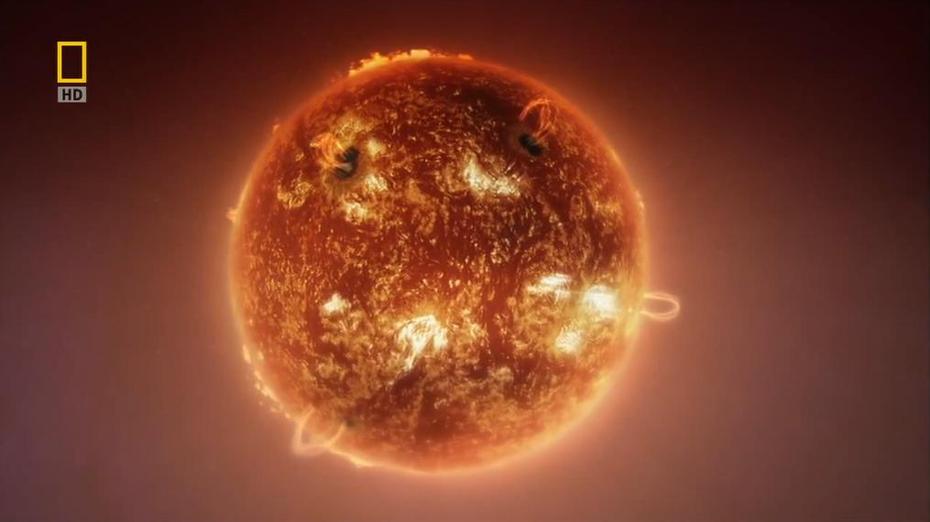 Representación de nuestro Sol en el documental "Viaje a los límites del Universo"