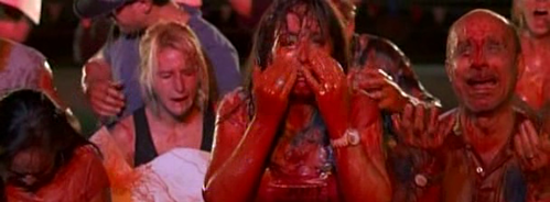 Pero la parodia de 'Jersey Shore' no es el único aliciente con el que cuenta la película, también tiene mucha sangre, casi tanta sangre como en una temporada completa de 'Spartacus', que mana de las víctimas de los tiburones como si de aspersores humanos se trataran. Las cabezas, cuerpos y miembros de látex tampoco se quedan atrás: si hay ficciones que intentan que algo parezca creíble, aquí sucede todo lo contrario, y es que canta a leguas que esos trozos de plástico no son humanos. Hay que destacar también el fantástico trabajo que ha realizado el equipo de posproducción con los tiburones voladores que son capaces de saltar hasta sobre un escenario para hacerse con una presa.